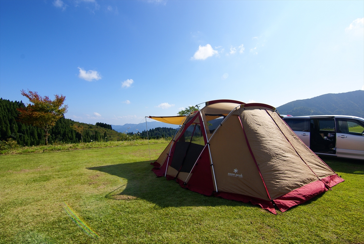 その後何度か行った後は、熊本県の「三日月の滝公園キャンプ場」で初のダイキん家単独でのキャンプ。その後は「久住高原オートビレッジ」等で数家族でのグループキャンプを楽しむとともに、一番癒されるキャンプ場「山鳥の森オートキャンプ場」に出会いました。