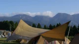 オートキャンプ場高原の里に到着し、受付を済ませて設営開始!完全ソロなんで、もちろん一人で設営。初めての一人設営でしたが、思ったより上手くいきました。ただ、レクタLの設営は風で大変でしたが・・・。