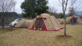 今回の注目は、生のサーバーです! 今回はリン子の所用でかなり遅めの出発となりました。急いで設営しました。今回はリビングシェルとアメニティドームの簡易連結です。