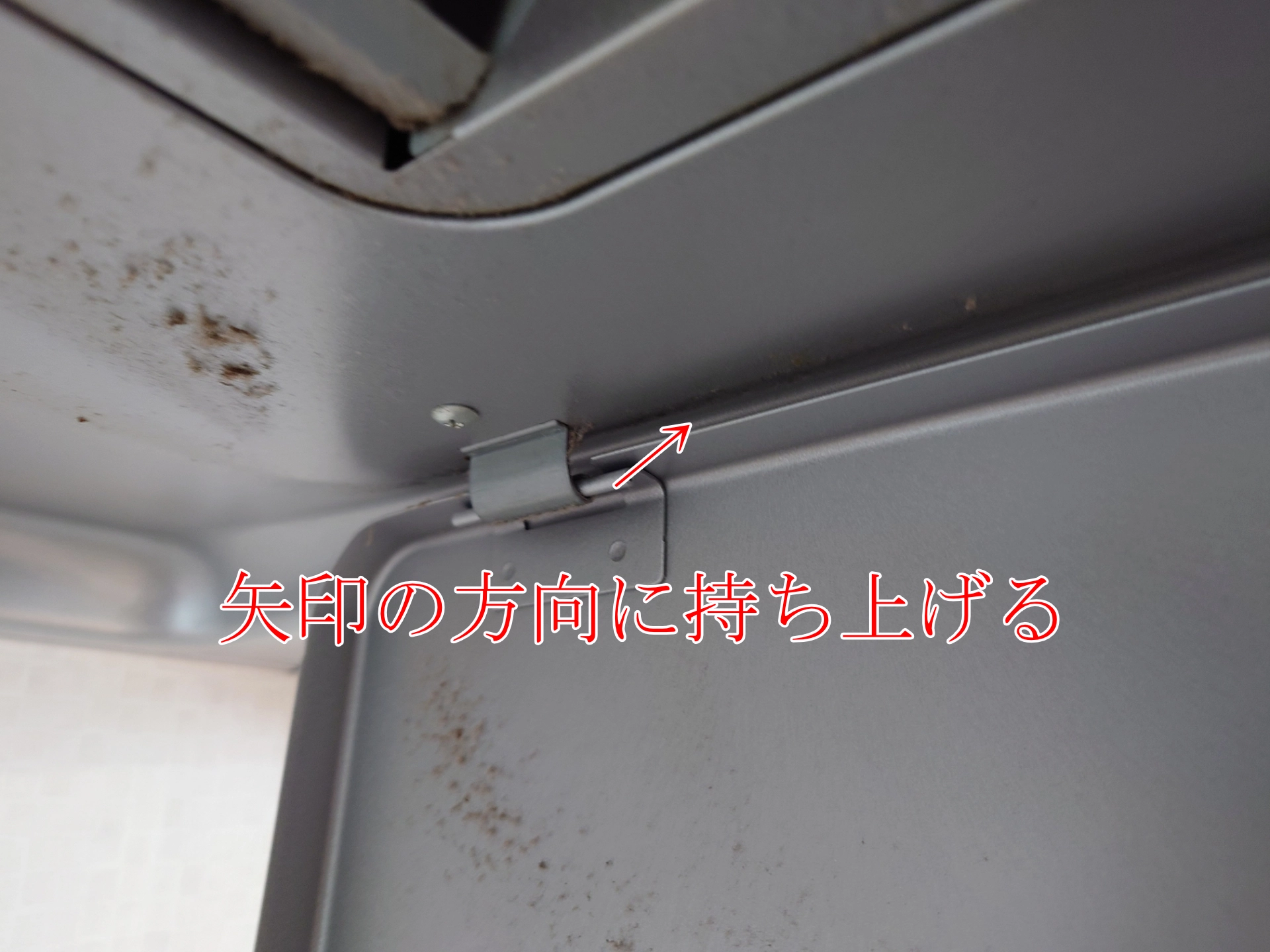 残りは2ヵ所で引っ掛けてあります。これを手前から奥に持ち上げると簡単に外れます。