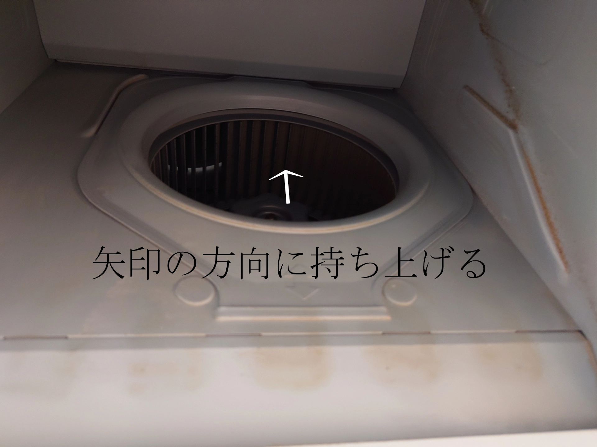 さらに奥にある、ファンの周りのカバー(ベルマウス)も、持ち上げるだけで工具なしで取り外せます。