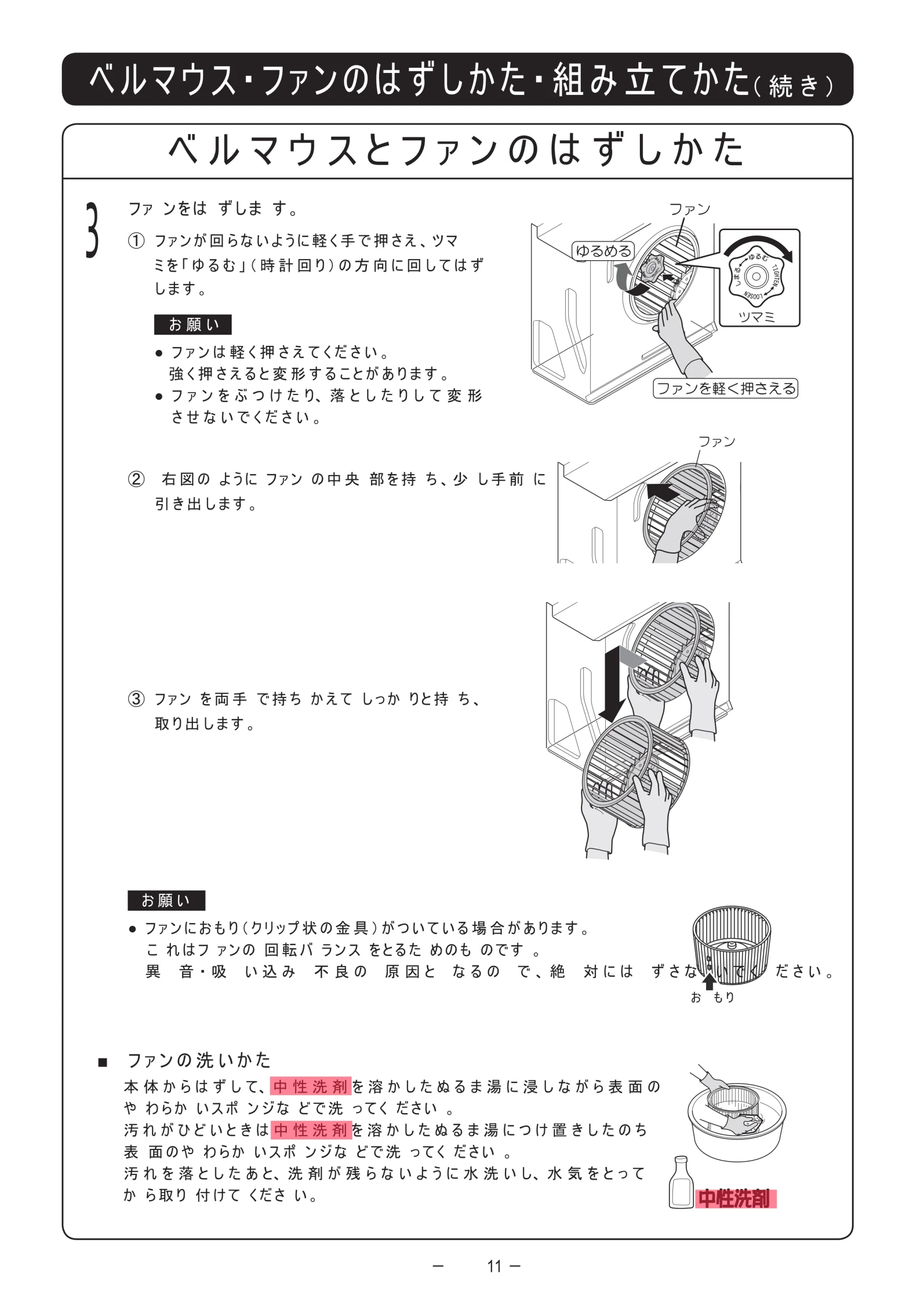 掃除が終わったら逆の手順で戻していきますが、ファンの取り付けにはコツがあります。