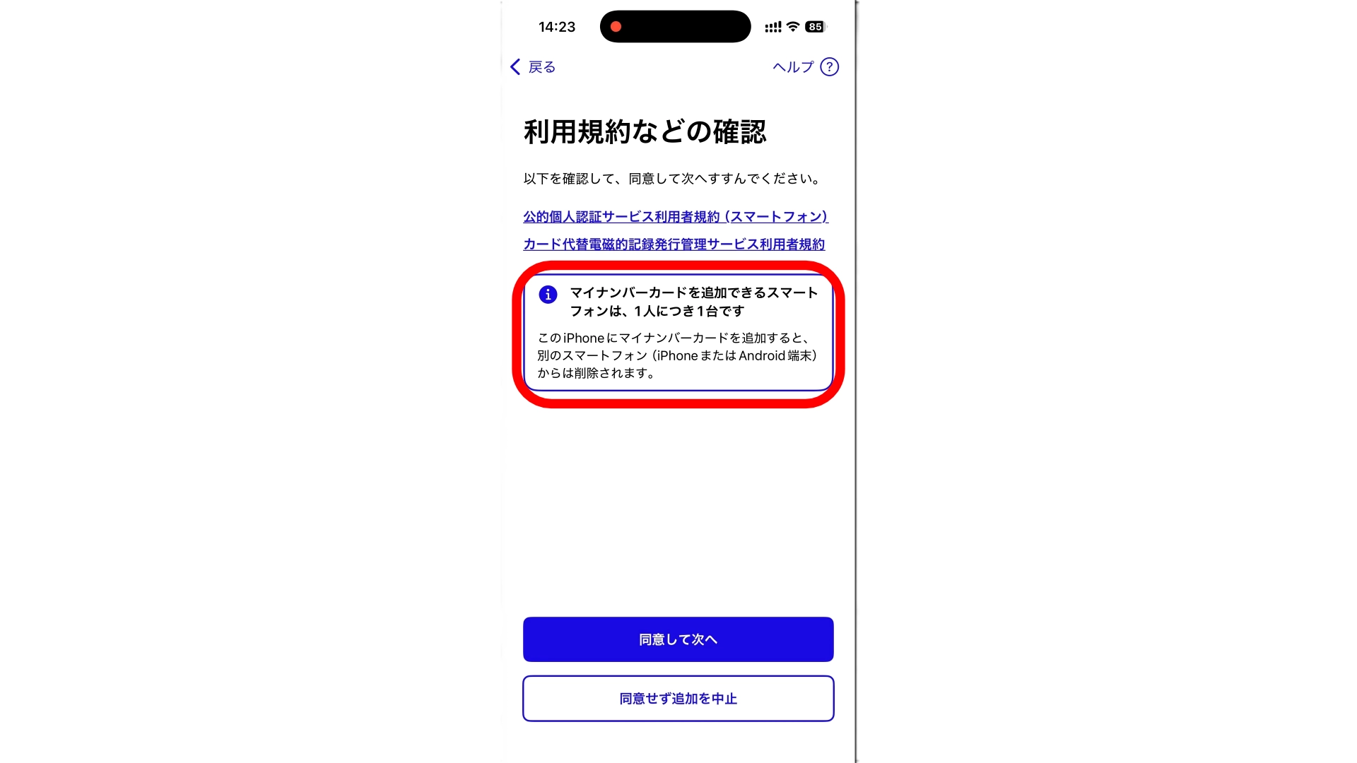 最後に確認ですが、マイナンバーカードを登録できるスマホは、一人につき一台となっています。