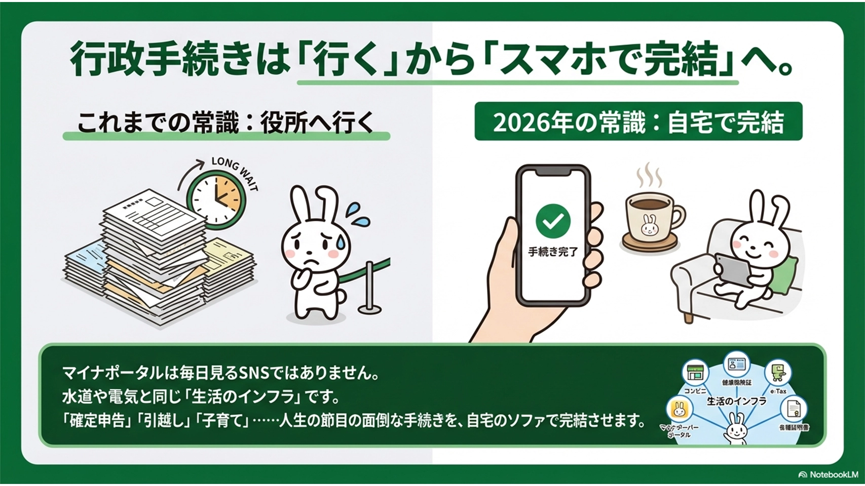 マイナポータルの最大のメリットは、時間と場所を選ばずに手続きができることです。これまでは平日の日中に仕事を休んで役所へ行っていた手続きが、24時間365日、自宅のソファからオンラインで申請可能になりました。