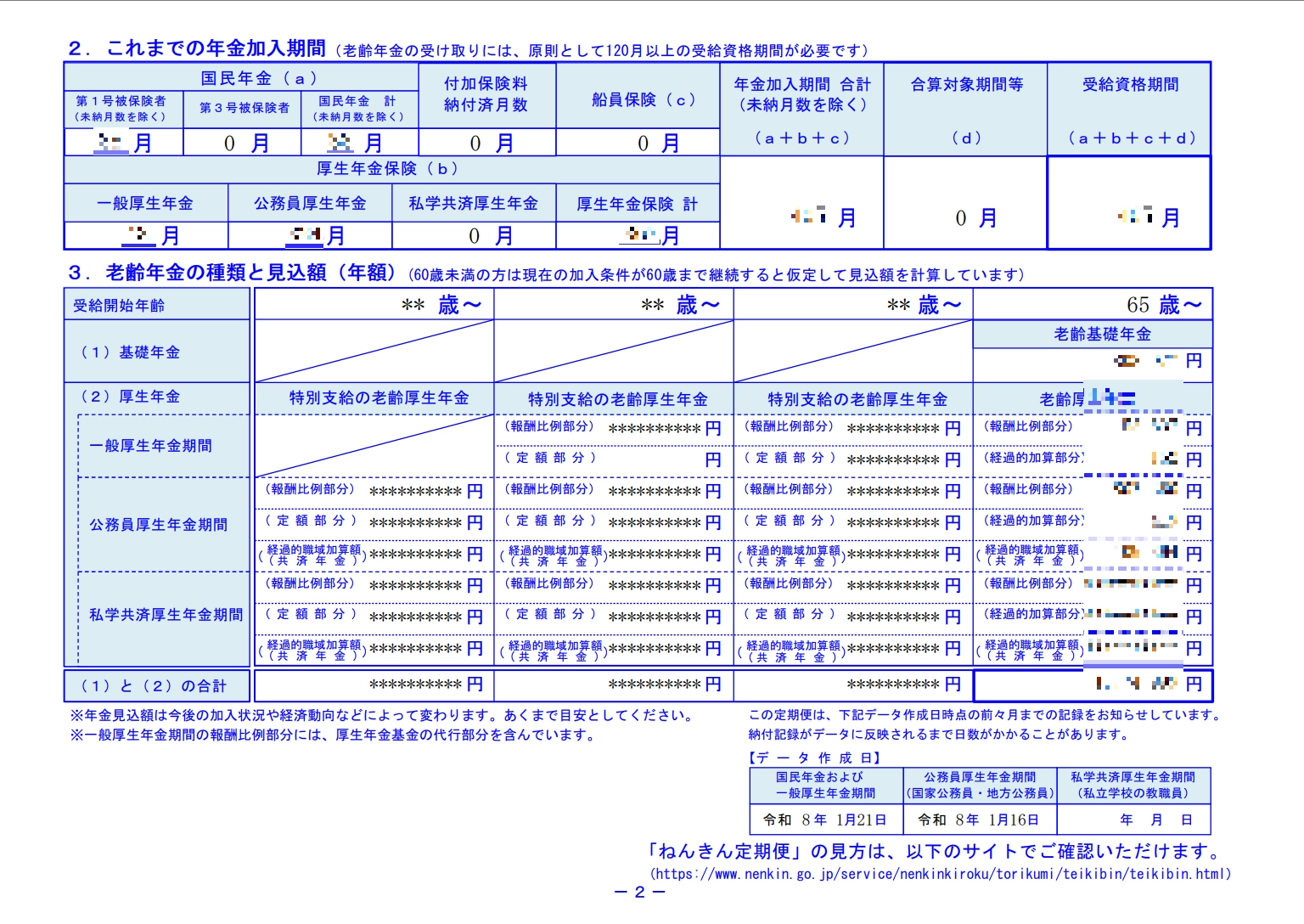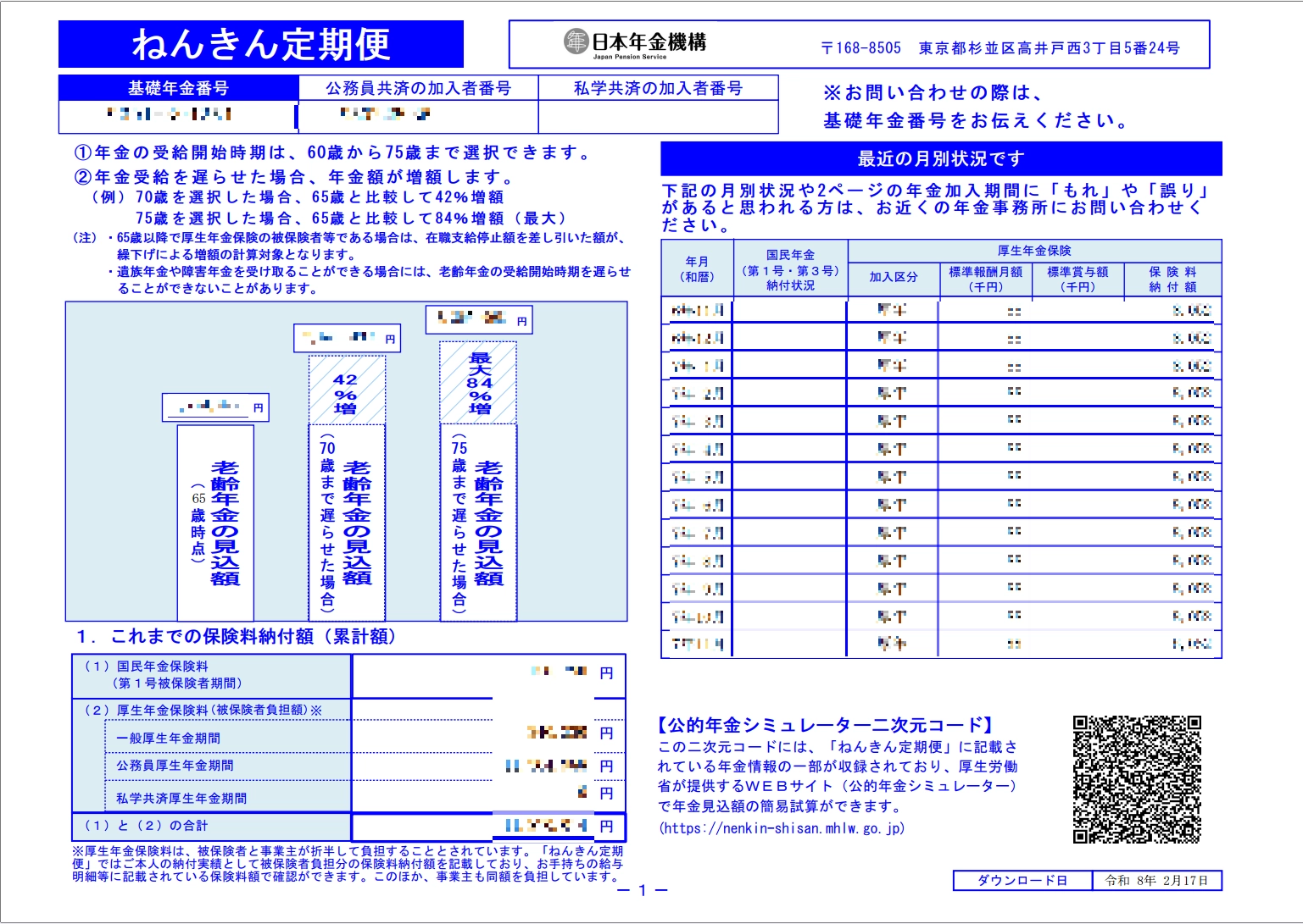 実際にダウンロードした「ねんきん定期便」は下になります。